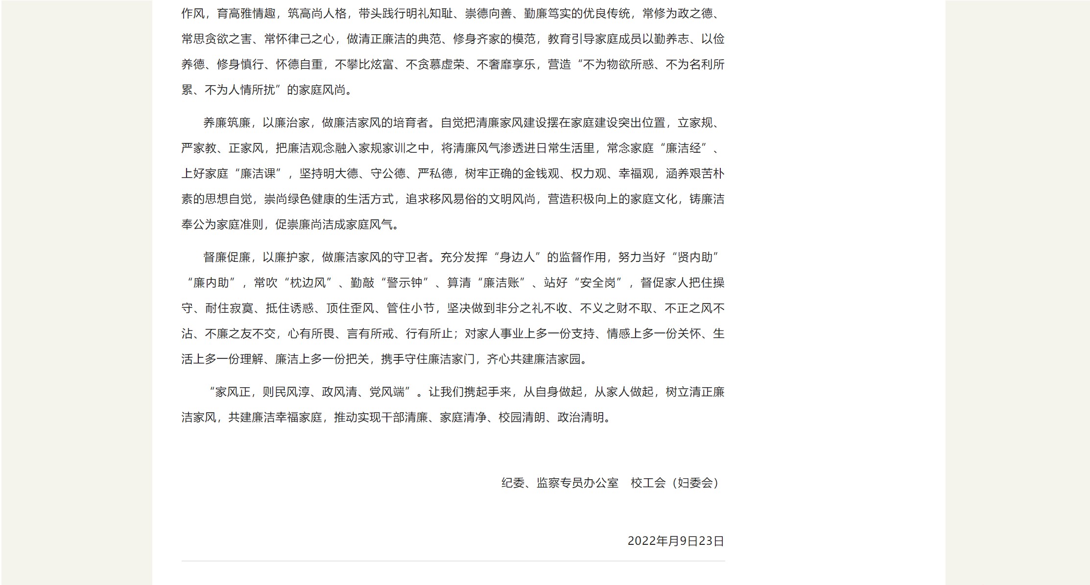当前位置: 英国正版365首页» 英国365» 党风廉政建设» 树风清气正家风 建廉洁幸福家庭 >> 正文