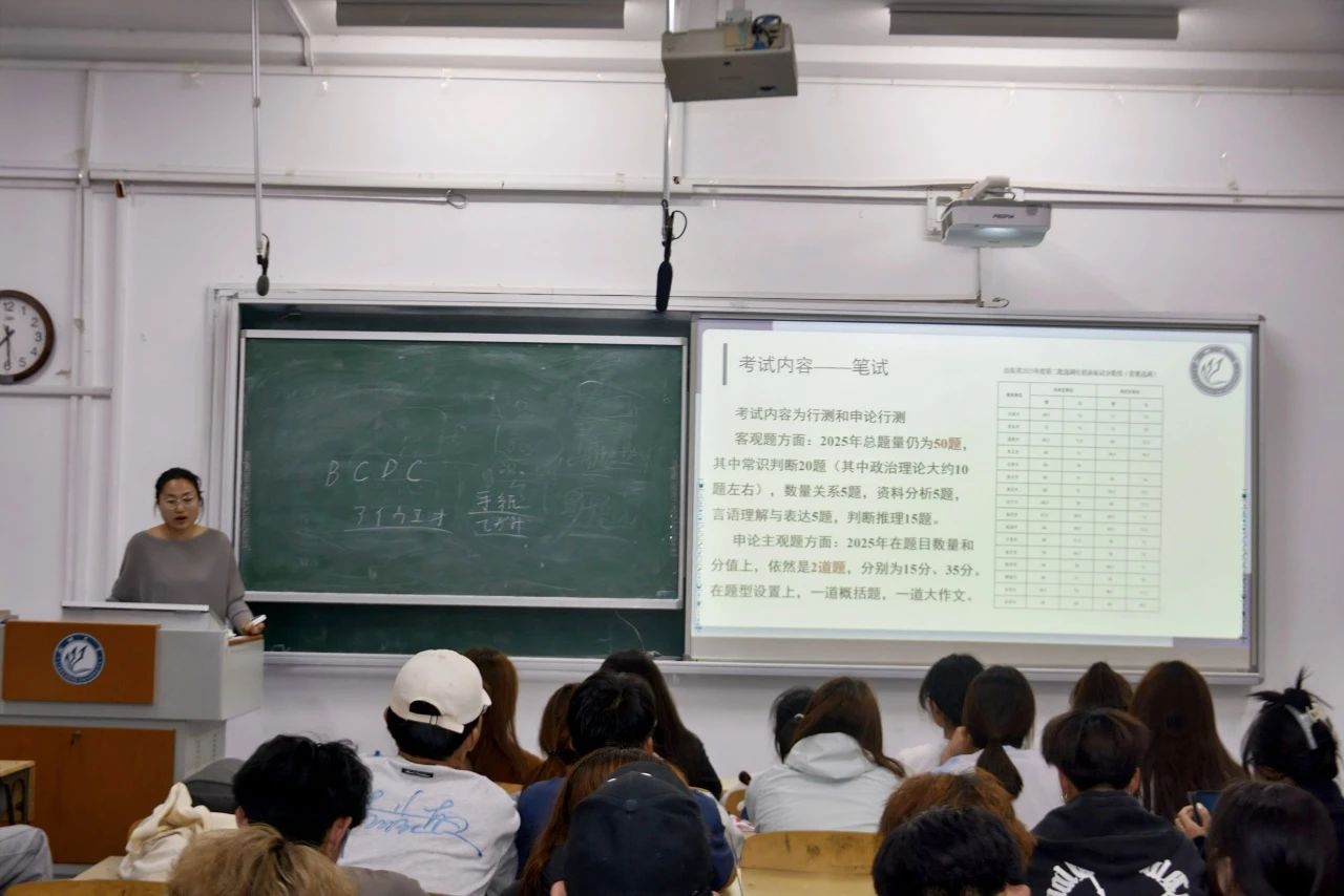 活动伊始,郑璨详细介绍了选调生考试的报考条件,强调这是参加考试的关键前提。他指出,选调生分为四类,即第一批专额定向选调、第二批常规选调、第二批定向选调以及拔尖选调,每一类在报考要求上都存在差异 ,提醒同学们务必精准把握。