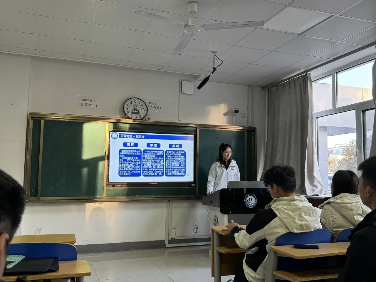 2024级体育教学专业研究生陈韦燕汇报题目为《高校体育课堂风险识别与评估研究》本文基于修正 IPA 方法以横纵坐标轴模型构建高校体育运动风险评估的“严重性 - 可能性矩阵”,通过分析高校体育运动风险发生的可能性和严重性,直观展现了教师和学生对当前体育课风险各要素评估的真实境况,为体育课的课堂安全提出建议。