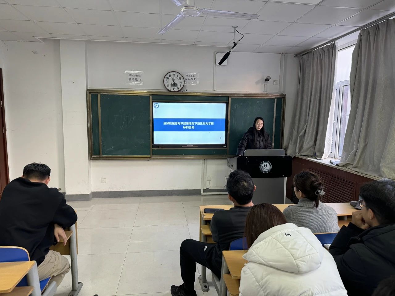 2024级社会体育与指导专业研究生张天琪汇报的题目为《屈膝肌疲劳对单腿落地时下肢生物力学指标的影响》本文通过研究发现屈膝肌疲劳对跳跃落地时下肢生物力学指标的影响,因此在非接触性ACL损伤预防方案的制定中更应关注腘绳肌等屈膝肌群,如通过离心训练等方法提高腘绳肌肌力或肌耐力以帮助延缓疲劳的发生,降低运动过程中ACL产生张力。