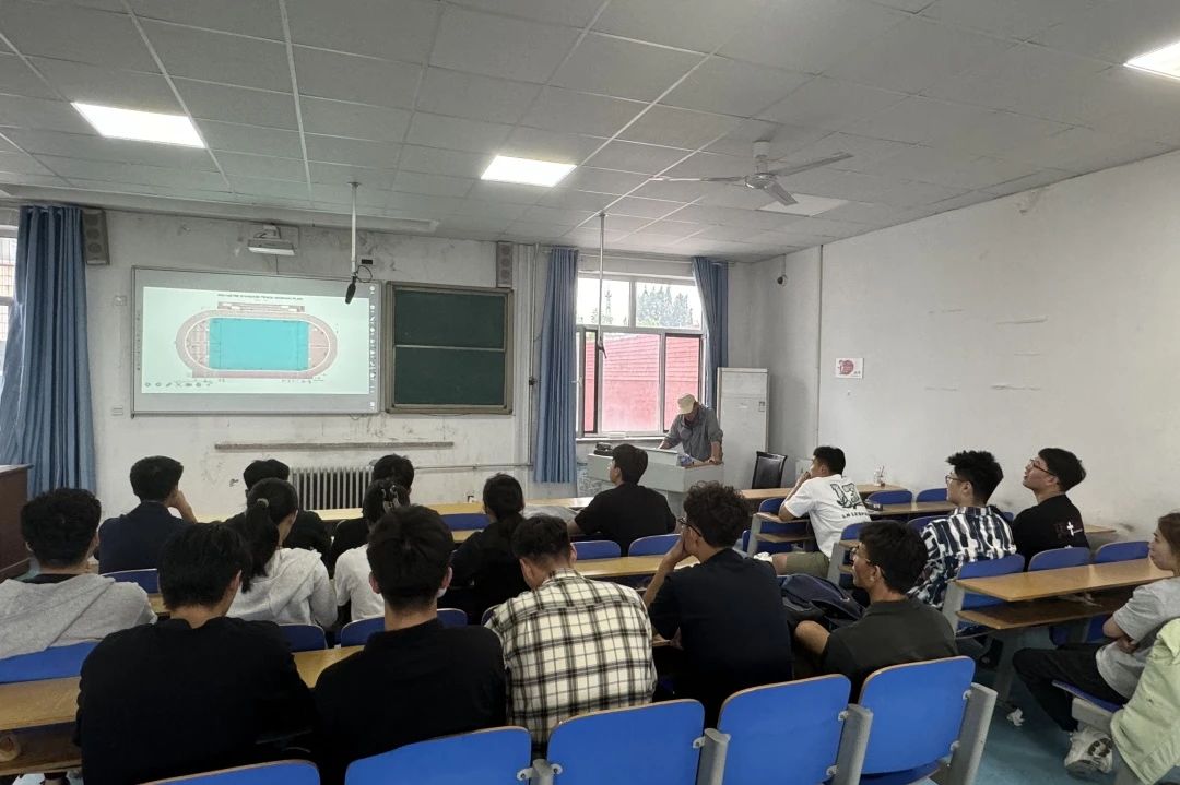 为使学生更深入的了解田径的相关知识,拓展学生的眼界,2025年5月22日在5-402教室王涛老师向大家分享了400m半圆式田径场画线的理论与实践研究。