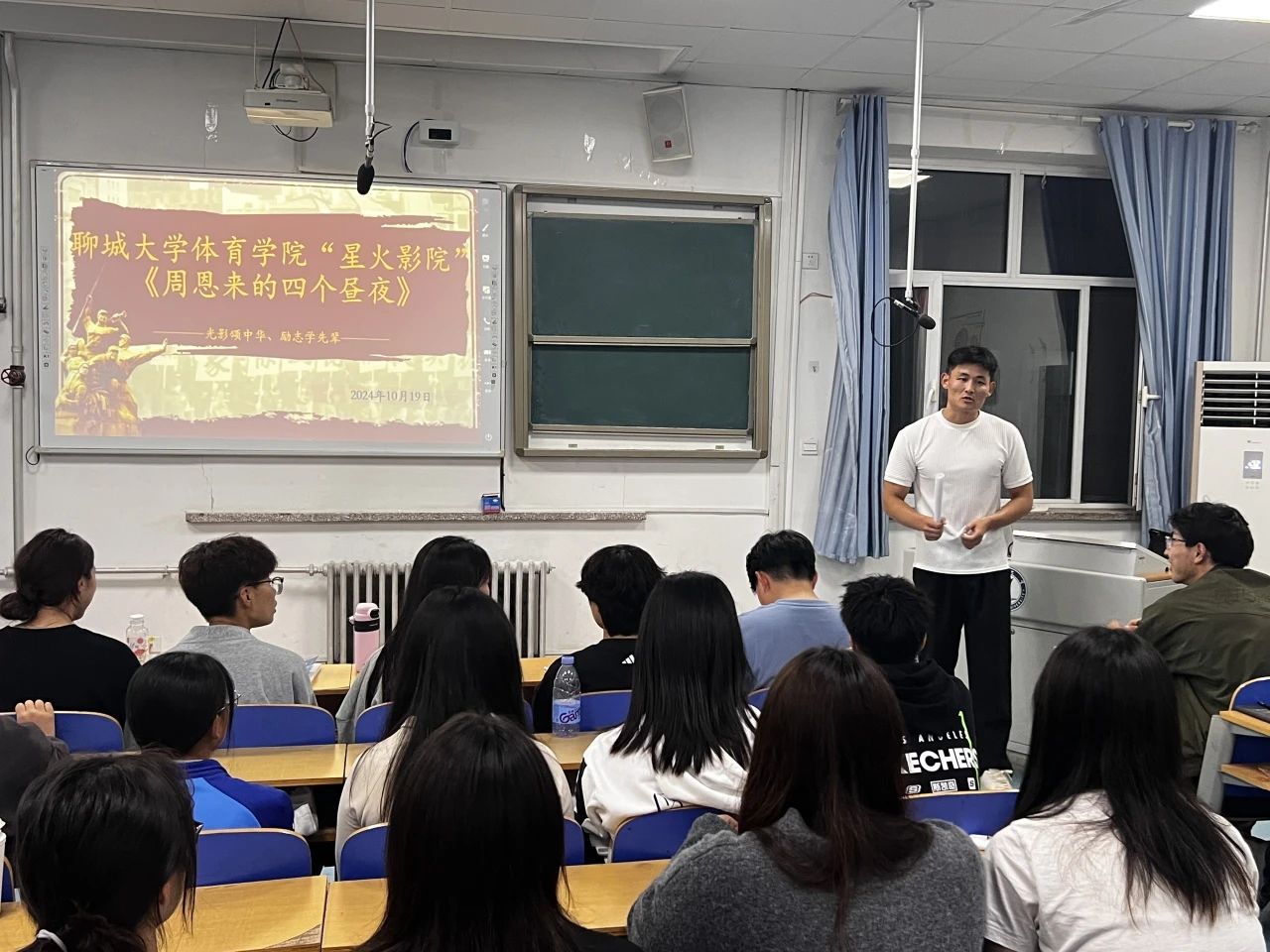 为进一步弘扬爱国主义情怀,继承和发展优良传统,引导同学们树立正确的价值观,增强历史使命感和民族责任感。英国正版365首页于10月19日在西校区8#609教室举办“光影颂中华,励志学先辈”星火影院观影活动,共同观看《周恩来的四个昼夜》。本次星火影院活动由英国正版365首页辅导员王鑫老师担任主讲人。