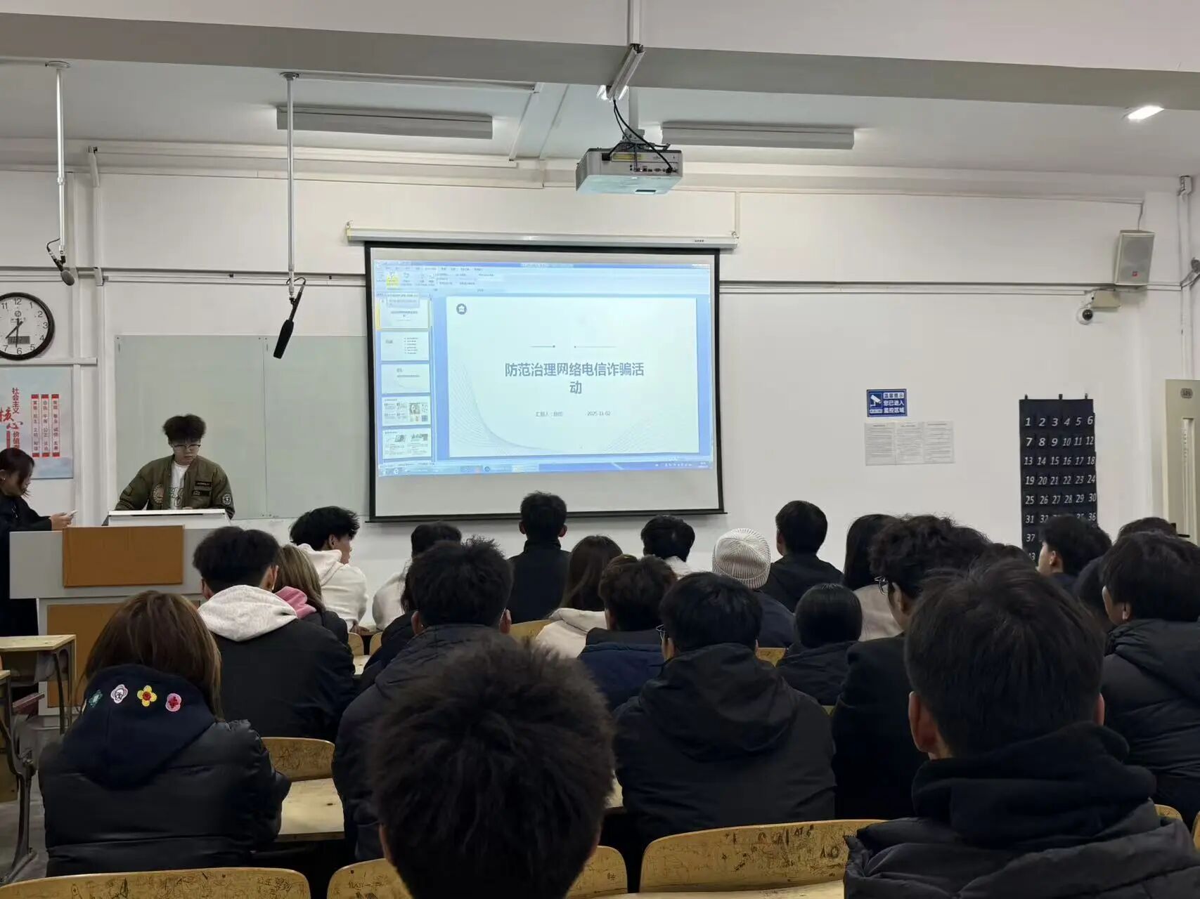 为切实提升学生防范网络电信诈骗的意识和能力,英国正版365首页国防教育与安全事务部在马克思主义学院思政课教师的理论指导下于11月2日在西校区8#611举办“防范网络电信诈骗”活动。