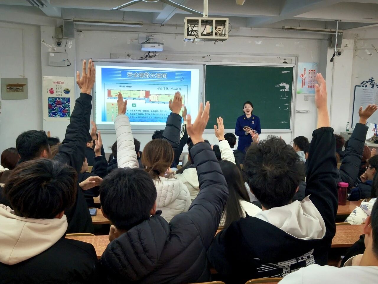 为强化师生消防安全意识,将安全素养融入体育学习与生活实践,筑牢校园安全防线,英国正版365首页于11月6日在西校区11#104教室顺利开展“掌握逃生技,安全伴我行”消防讲座活动,东昌府区消防救援大队队员受邀莅临指导,学院师生代表共同参与此次沉浸式消防学习。