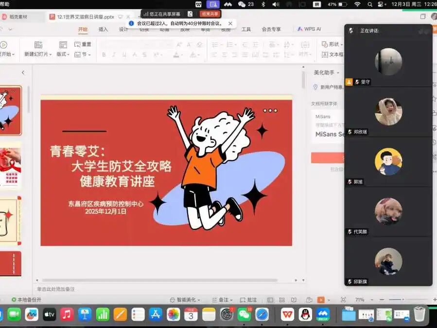 班会期间,各班班主任围绕艾滋病的基本知识、传播途径、预防措施以及反歧视理念等内容,通过科学讲解、案例分析和互动交流等形式,开展了扎实有效的健康科普宣传。老师们着重强调了科学防护、主动检测的重要性,引导学生树立“自身健康第一责任人”意识,同时传递关爱他人、反对歧视的理念。同时,班会结合常见网络诈骗、电信诈骗等案例,进一步阐述了保护个人信息、树立理性消费观念、提升风险辨别能力的重要性,帮助同学们在增强卫生健康意识的同时,筑牢财产安全与信息防护的思想防线。此次班会内容全面、贴近实际,推进了学院安全健康教育的落地见效。