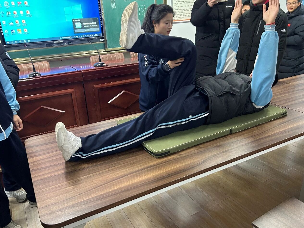 1 月 25 日,团队走进莱阳市体育运动学校 —— 山东省传统体育项目训练基地(内设田径、篮球专项训练场),开展运动损伤防护专项培训。本次培训聚焦基层体育训练中高发的关节扭伤、肌肉劳损问题,以 “理论精讲 + 现场实操” 双轨模式开展教学,核心围绕损伤识别与应急处置、运动前后标准化拉伸流程、日常训练基础康复防护技巧等实用内容展开。活动前期,团队通过问卷全面摸排 42 名田径、篮球特长生的既往运动损伤情况,结合学生实际伤情定制专属培训内容;培训现场,队员逐一讲解防护理论、示范标准动作,对参训学生进行一对一姿势纠正,并依托场馆现有训练器材组织分组实操演练,帮助学生快速掌握可直接应用于日常训练的防护方法,切实提升其自我保护与损伤应急处置能力,为校园体育训练的安全开展筑牢基础。