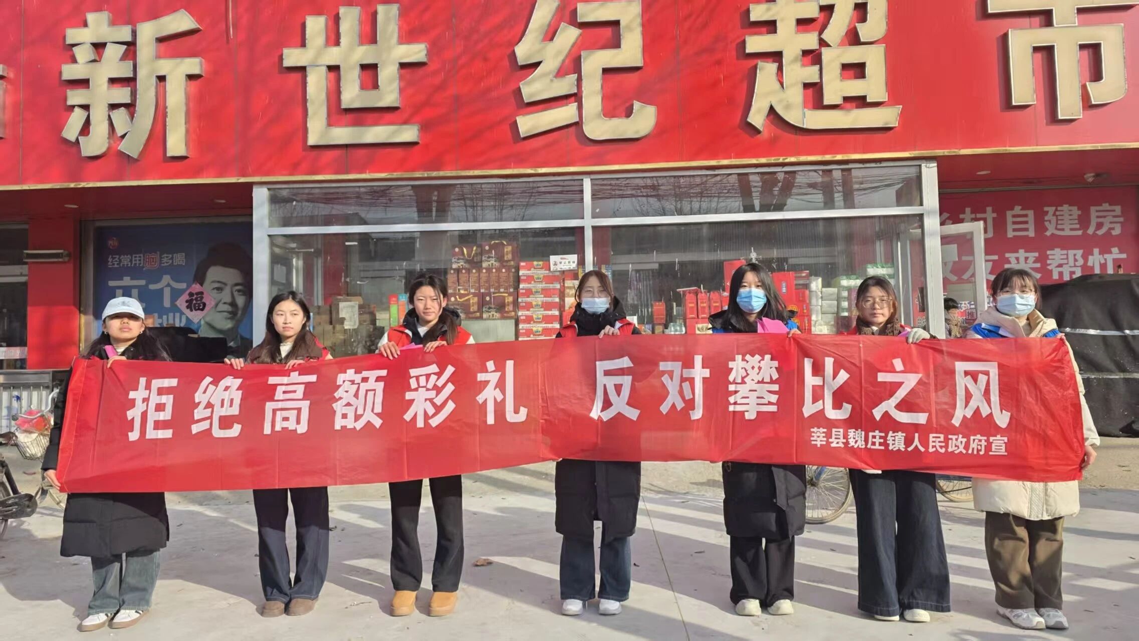 作为一名返乡实习的青年,我以志愿者的身份投身宣传活动,和乡镇工作人员、前辈们一同走进街巷、深入群众,通过发放倡议书、讲解政策案例、面对面沟通交流等方式,向居民宣传高价彩礼带来的婚恋压力、家庭负担与社会问题,倡导简约适度、文明向上的婚俗观念。此次宣传活动,让我跳出书本认知,真切理解了基层工作的温度与意义。