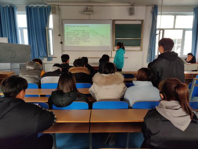 职业技能规划部负责人通过课件给大家详细的介绍相关职业的知识以及大学生职业生涯规划的重要性,并进行一系列小测试,让同学们加深对相关职业理解。介绍完之后,参加班会的同学进行互动讨论。班会最后负责人总结,对自己想从事的职业要进行深入综合的分析,了解该职业所需的专业训练、能力、年龄、性格特点等要求,职业的性质、工作环境、福利待遇以及发展空间和就业竞争机会。