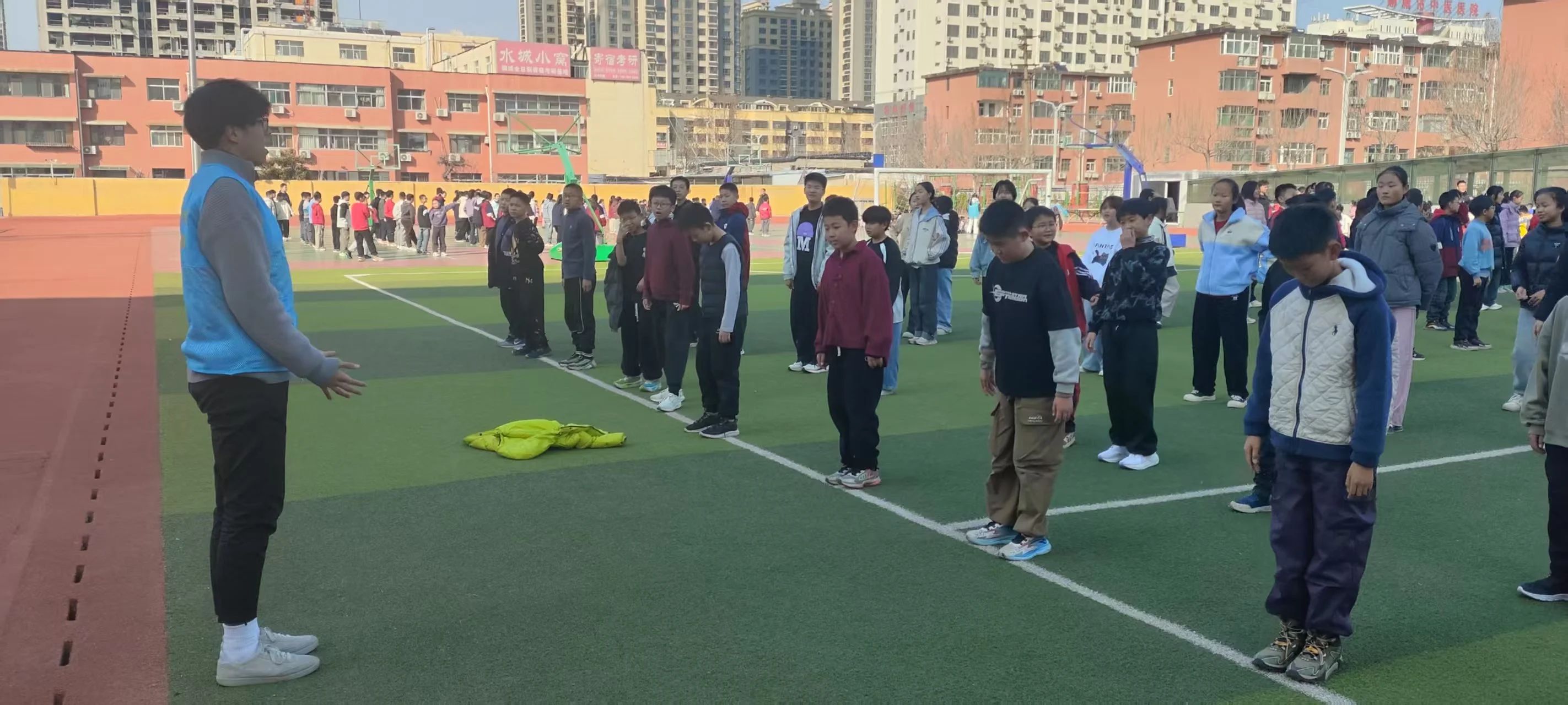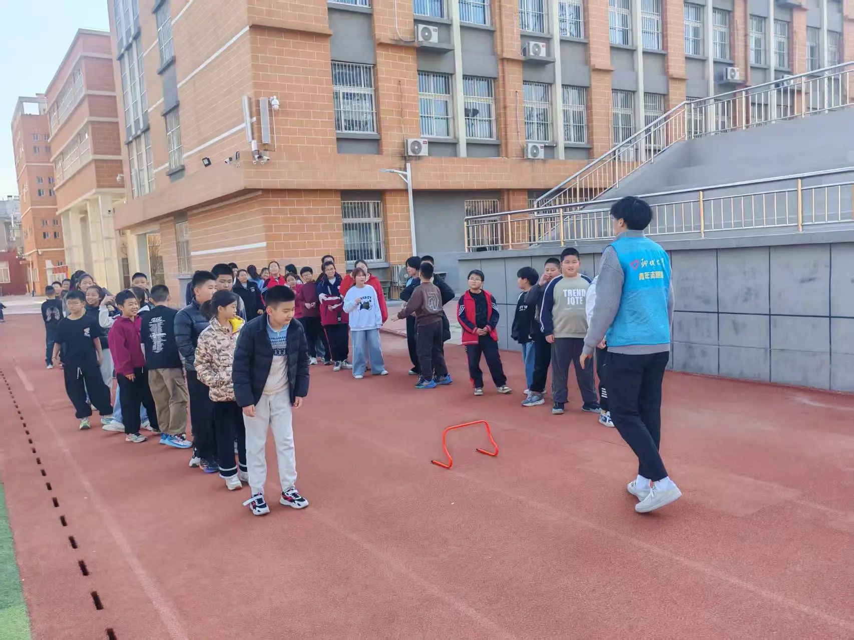 在体能训练环节,学生们积极参与了跳栏架弹速练习、接力折返跑耐力练习等项目。志愿者们还为孩子们设计了“老鹰抓小鸡”和“贴膏药”等趣味项目,在比赛中展现了顽强拼搏的精神。