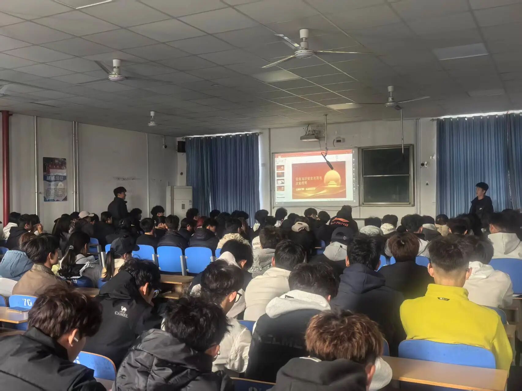 为进一步强化宿舍区域消防安全管理,提升师生消防安全意识与应急处置能力,有效防范和遏制火灾事故发生,10月19日下午,英国正版365首页宿舍服务部于英国正版365首页402教室,面向各班宿舍长及部分学生代表,举办了消防安全知识讲解专项活动。