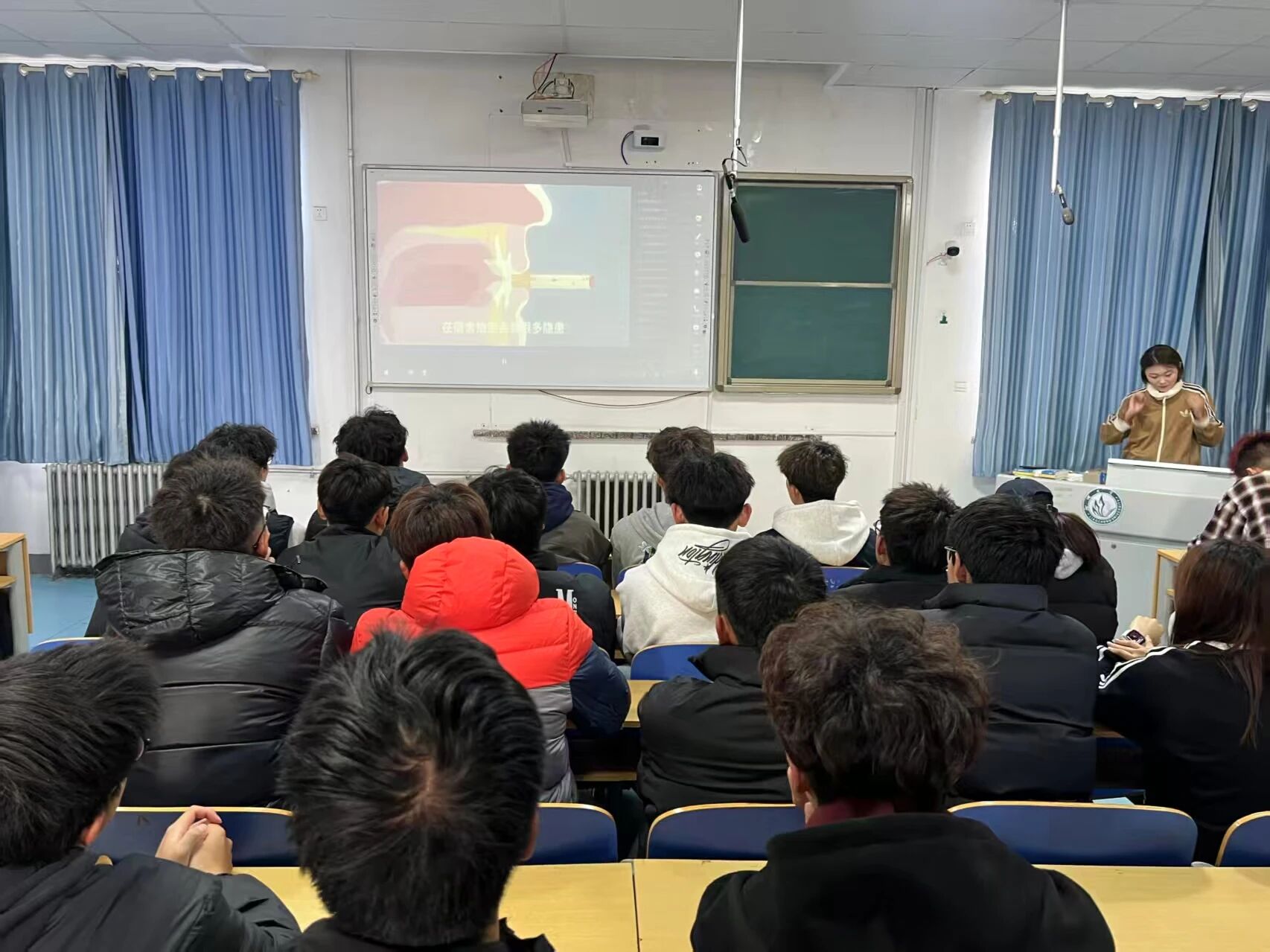 活动伊始,主持人王文梅开场致辞,强调了宿舍作为同学们日常居住的场所,创建无烟环境对个人健康与公共安全的重要意义。宣讲会通过真实案例视频展示、无烟知识问答与学生代表倡议发言等环节层层推进,全面加深了同学们对无烟宿舍建设的理解与认同,有效引导大家树立正确的健康观念,自觉抵制吸烟行为,共同守护洁净、绿色的宿舍空间。