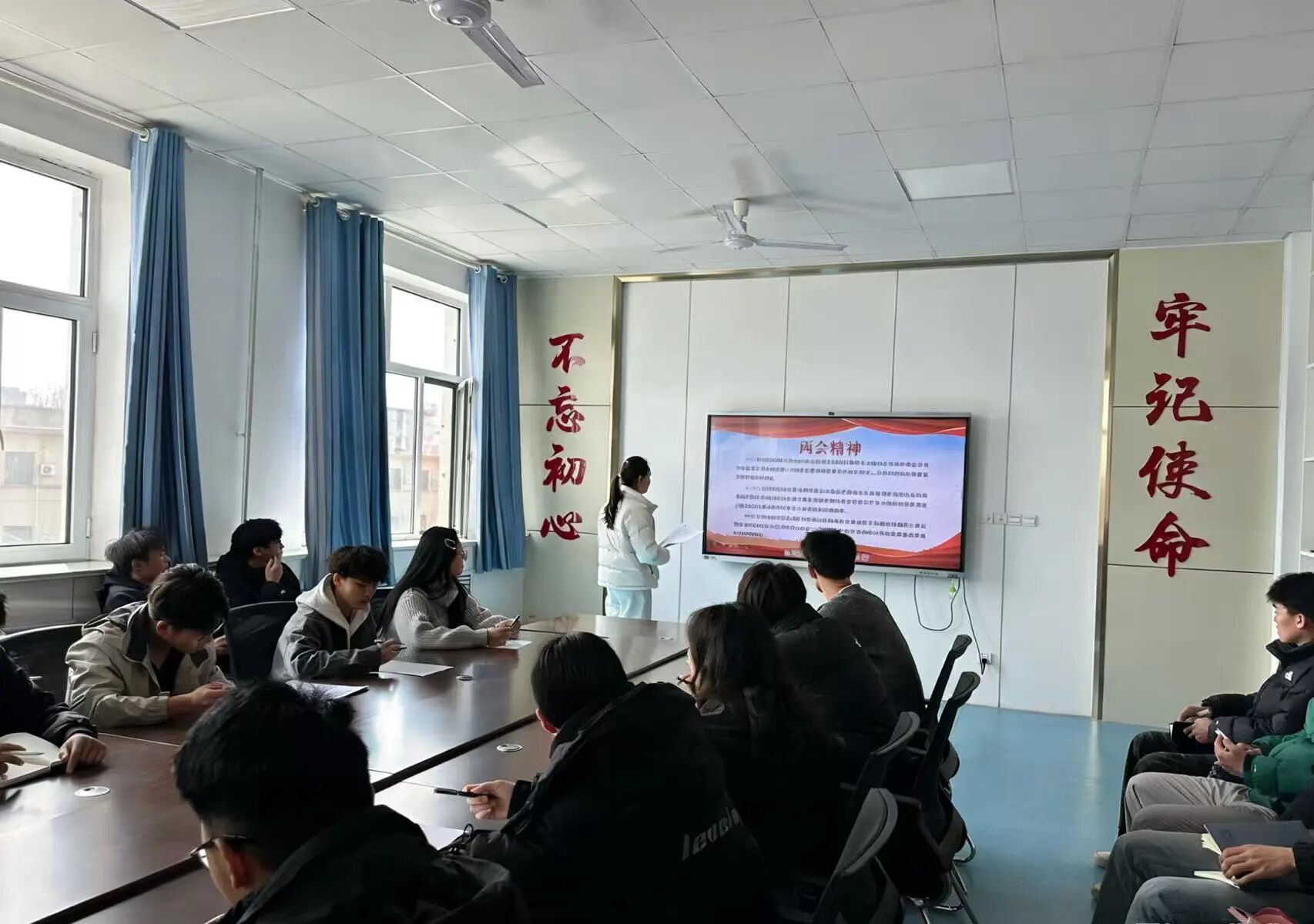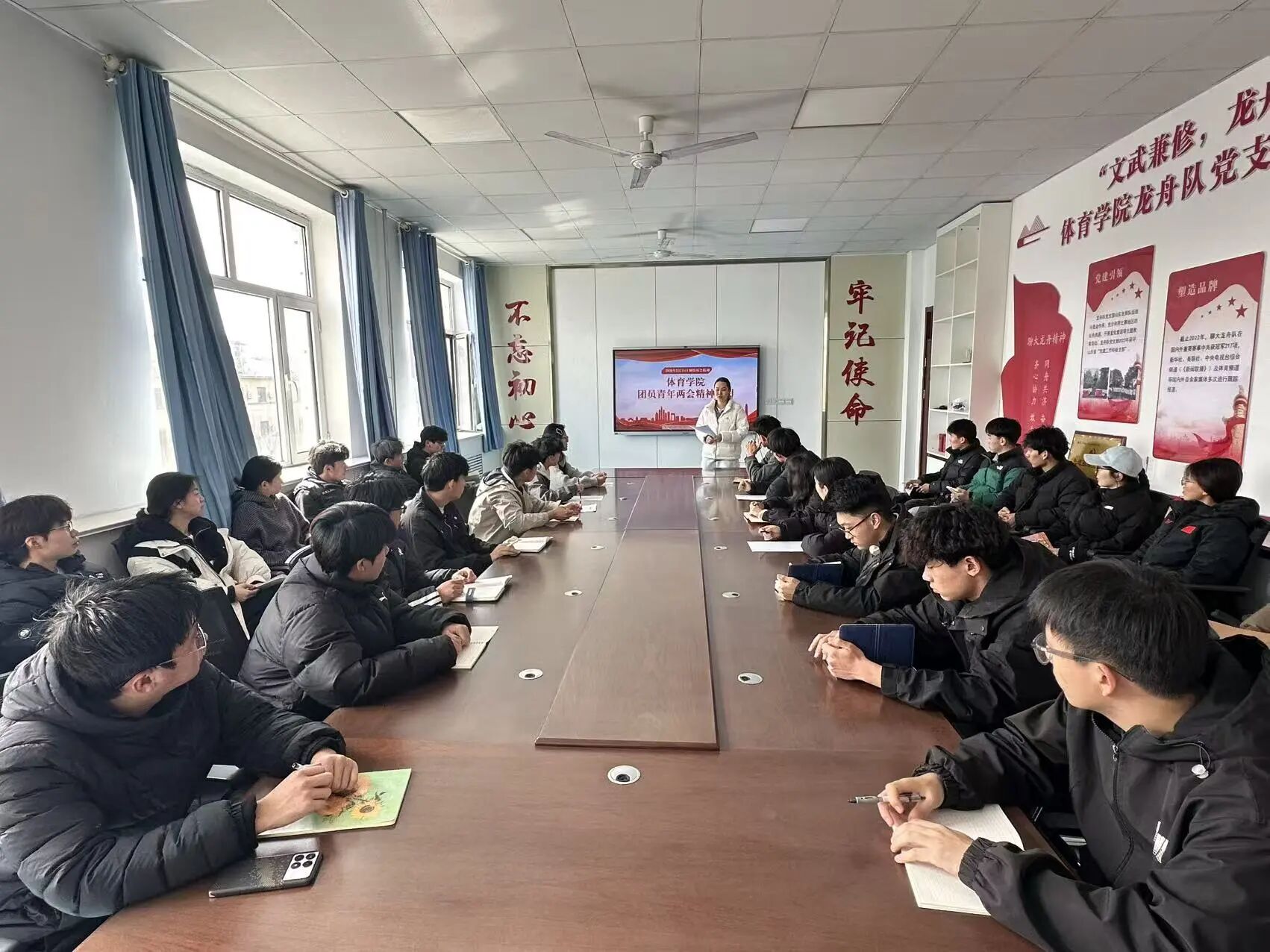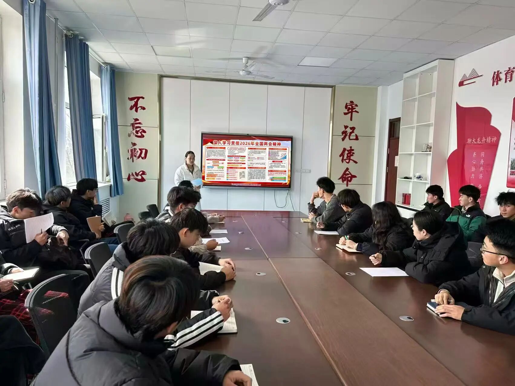 为深入学习贯彻2026年全国两会精神,锚定“十五五”开局之年发展航向,英国正版365首页于3月15日下午在党员活动室,组织学生会主要学生干部及各班级团支书开展专题学习。与会人员深刻领会国家发展战略部署,牢记新时代青年使命担当,切实把思想和行动统一到两会精神上来,以青春担当助力体育强国与教育强国建设。 学习中,聚焦高质量发展、民生保障、教育科技人才一体化、健康中国、体育强国、健康第一理念、一老一小体育服务等重点内容,结合大学生成长与学生会工作深入交流。大家一致认为,两会精神既是国家发展的行动指南,也是青年奋进的精神坐标。作为学生骨干,更应把思想和行动统一到会议精神上来,以实际行动践行初心使命。 学生干部将以两会精神为引领,立足服务同学、奉献校园的宗旨,发挥体育专业优势,践行健康第一理念,服务一老一小群体。一是强化理论学习,带动广大同学关注时事、坚定信念,营造勤学善思的校园氛围;二是聚焦主责主业,围绕学风建设、体质提升、权益维护、校园体育文化、全民健身推广等开展务实工作,切实解决同学急难愁盼;三是勇于担当作为,积极参与社会实践与志愿服务,把专业所长融入社区健身指导、青少年体育赋能、老年健康服务等民生实践,把个人理想融入国家发展大局。 新时代赋予新使命,新征程呼唤新作为。学生会主要学生干部及各班级团支书将牢记嘱托、脚踏实地,以更饱满的热情、更务实的作风服务同学、建设校园,努力成长为有理想、敢担当、能吃苦、肯奋斗的新时代大学生,为体育强国、健康中国建设与强国建设、民族复兴贡献青春力量。 编辑人:辛佳颖