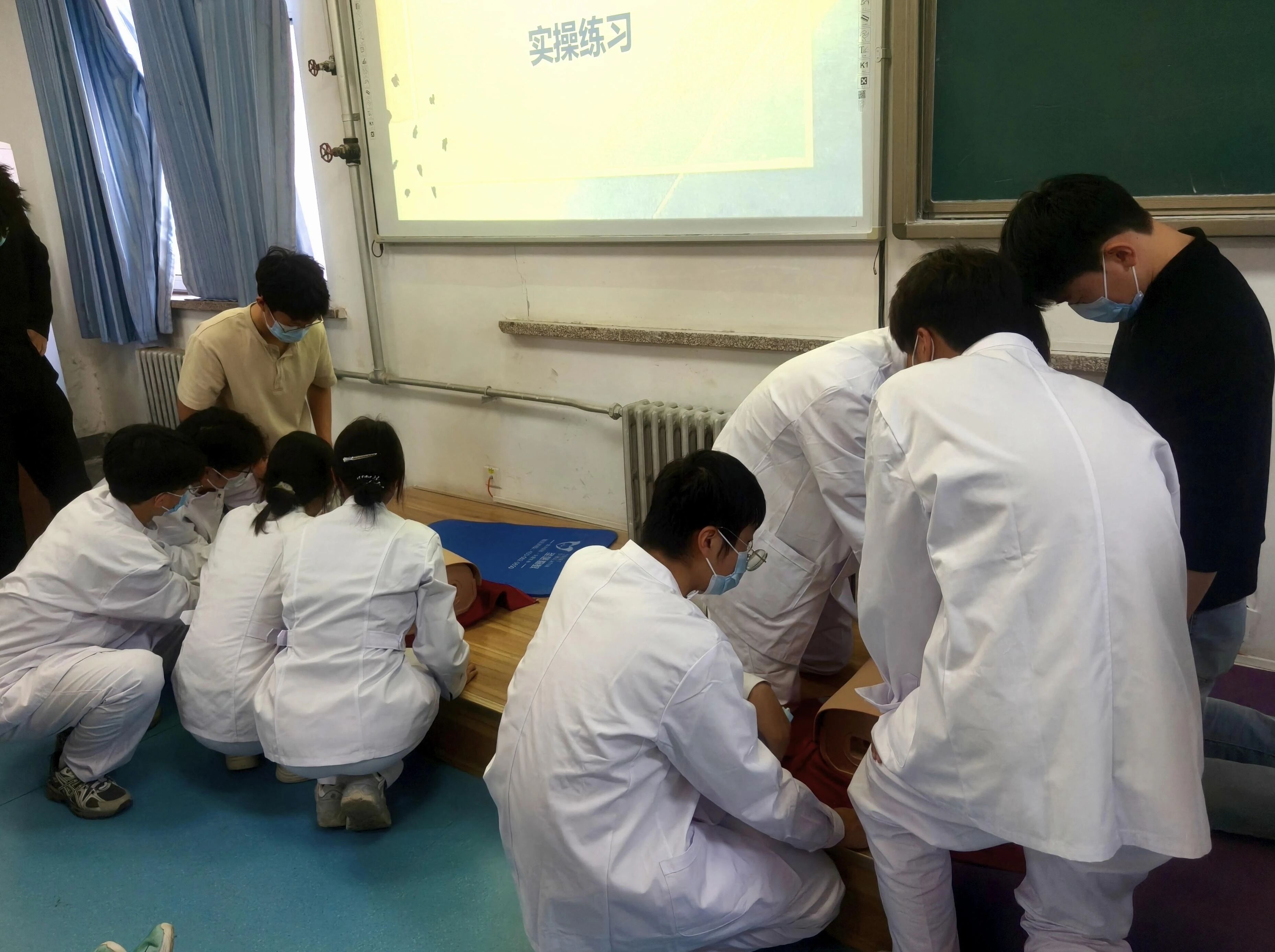 活动里,从心肺复苏的按压深度与频率,到气道异物梗阻的“海姆立克法”,通过主持人专业的讲解,演示者清晰标准的动作,让同学们掌握了急救的方法,让“黄金4分钟”变得清晰可感;同学们在模拟器材前反复练习,从紧张生涩到流畅完成急救流程,在互动里消除了对急救的陌生感。急救技能不是遥远的“知识”,而是守护生命的“底气”。