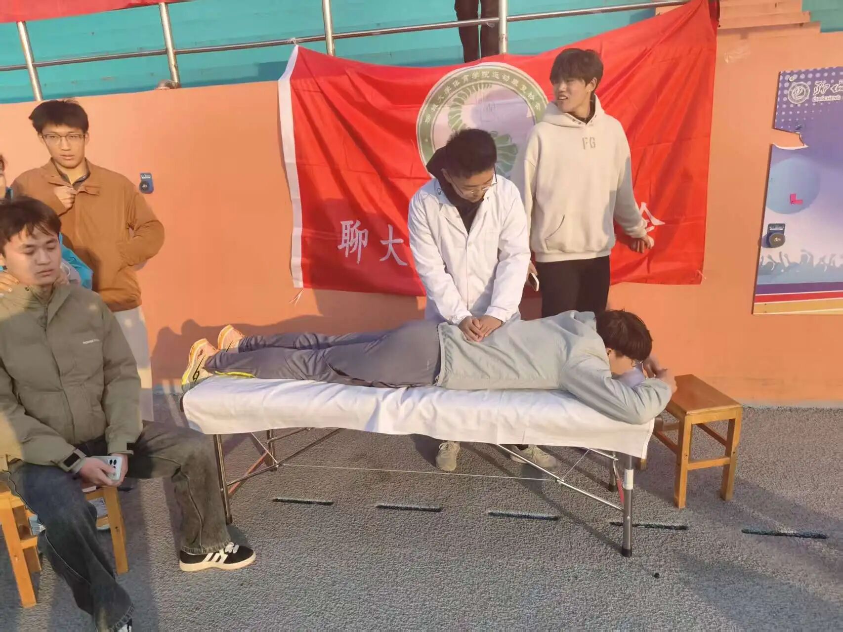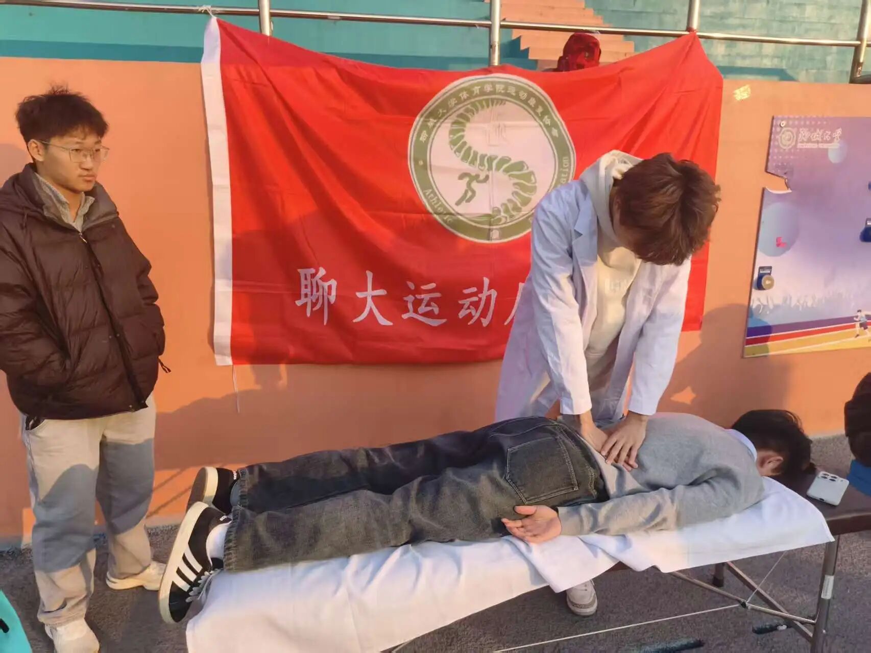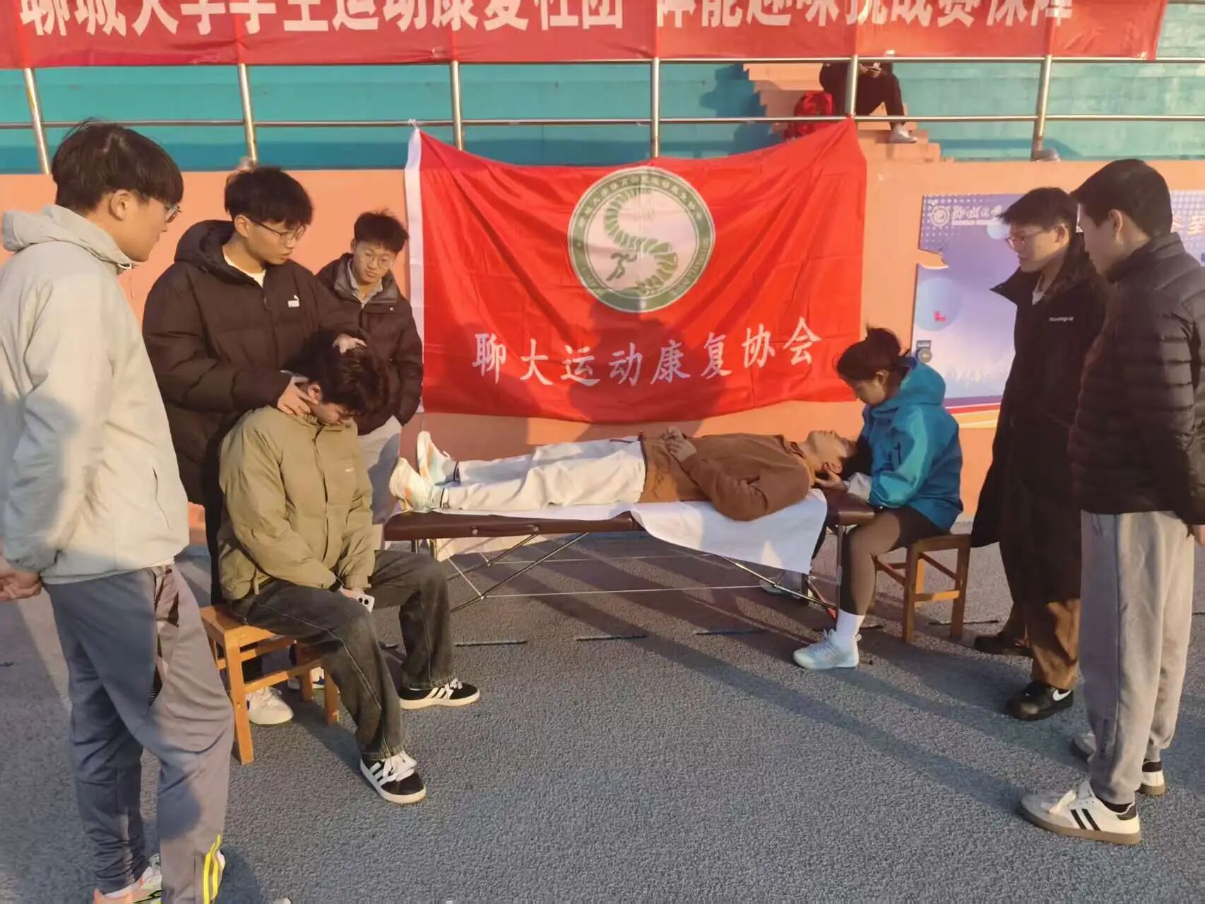 为践行志愿服务精神,传播科学运动与健康康复理念,助力校园体育文化发展,365(vip)英国上市运动康复社团于2025年12月6日下午,在东校区田径场圆满举办了“青春义诊,运动安康”主题公益活动。