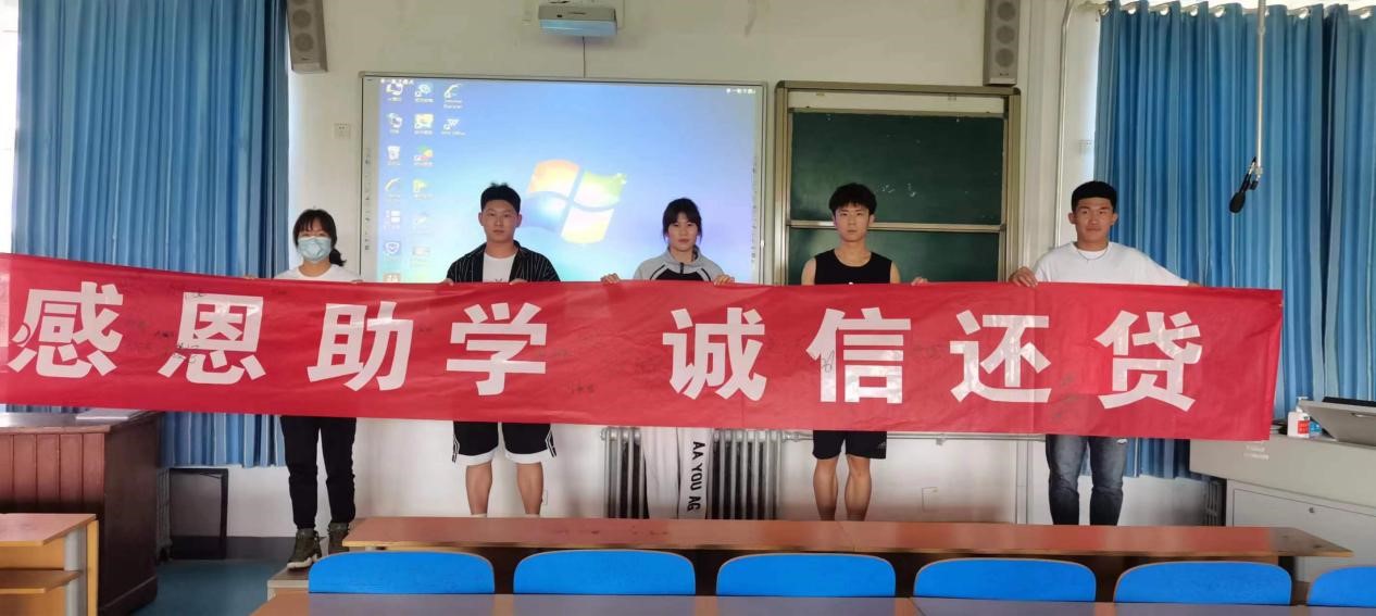 在我们为学费愁眉不展的时候,是国家助学贷款,为我们解决了后顾之忧,助我们圆梦大学。饮⽔思源,如期履约,按时还贷,是每个获贷学⽣的责任与义务,是你们对个⼈信⽤的珍惜和维护,也是对国家、社会和学校的回报!