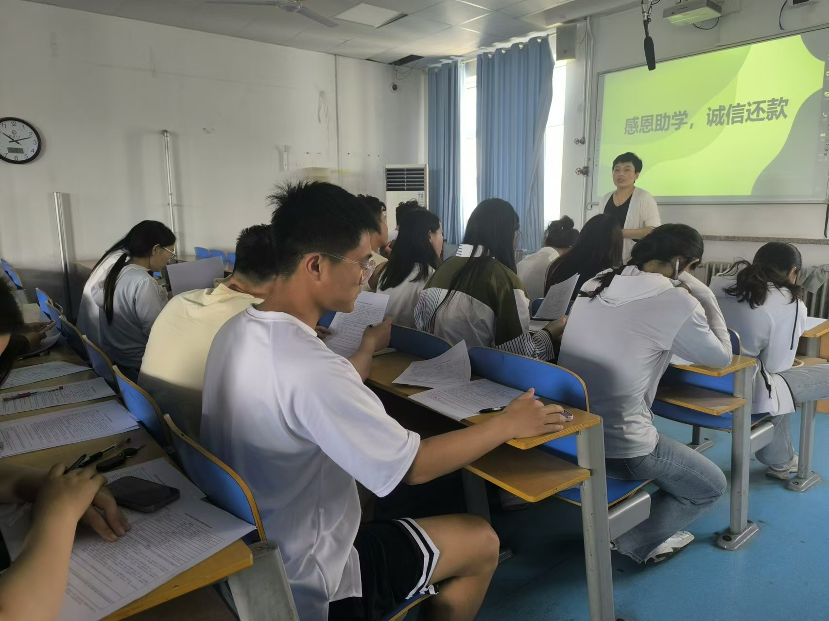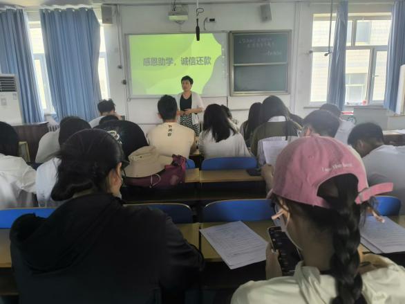 5月22日英国正版365首页在365(vip)英国上市西校区5号楼406教室举办了以“感恩助学,诚信还款”为主题的教育活动。此次活动旨在深化学生对国家和社会资助的认识,强化学生的感恩意识和诚信观念,引导他们在未来的人生道路上,以实际行动回馈社会,展现新时代青年的责任与担当。