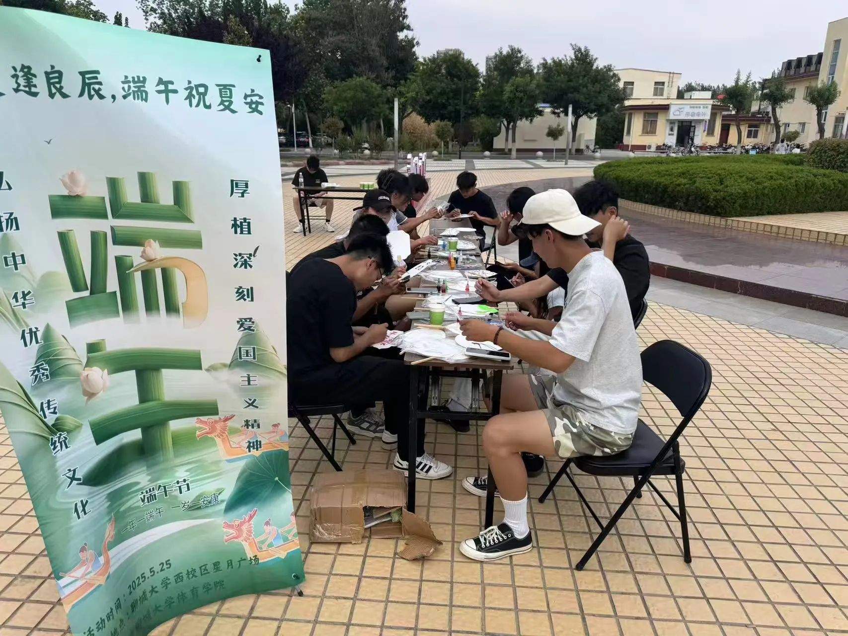 创意体验,邂逅别样端午风情。学院资助服务部举办的端午主题活动同样亮点十足。在团扇绘制区,洁白的团扇、缤纷的颜料、齐全的画笔,为同学们提供了创作的舞台。大家化身“艺术家”,或勾勒憨态可掬的卡通粽子,或描绘龙舟竞渡的激烈场景,每一把团扇都承载着独特的端午故事。游戏区的“弹乒乓球进水杯”游戏更是人气爆棚,同学们挑战将乒乓球弹入指定水杯赢取五彩绳,现场加油声、欢笑声不断,失败的同学不服输,成功的同学分享喜悦,传统文化在趣味体验中焕发新生。