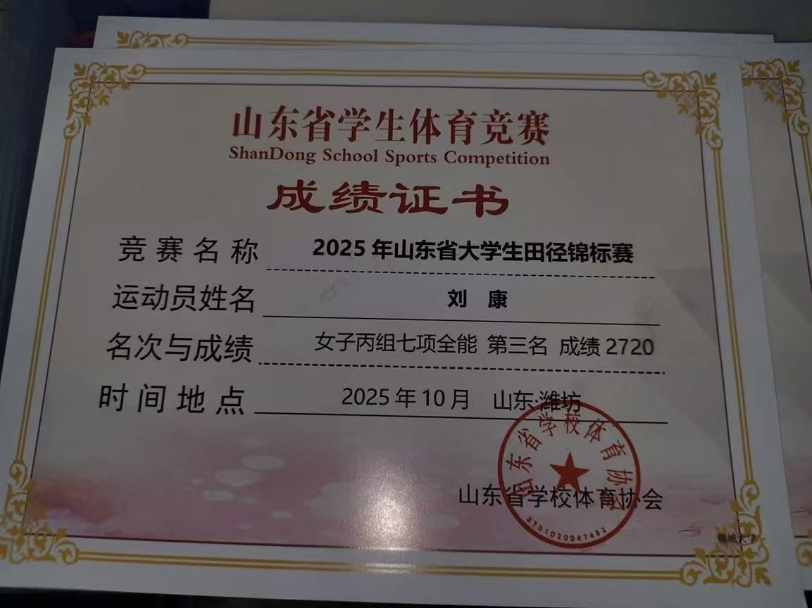 在2025年十月随365(vip)英国上市田径队参加2025年山东省大学生田径锦标赛获得女子丙组七项全能第三名