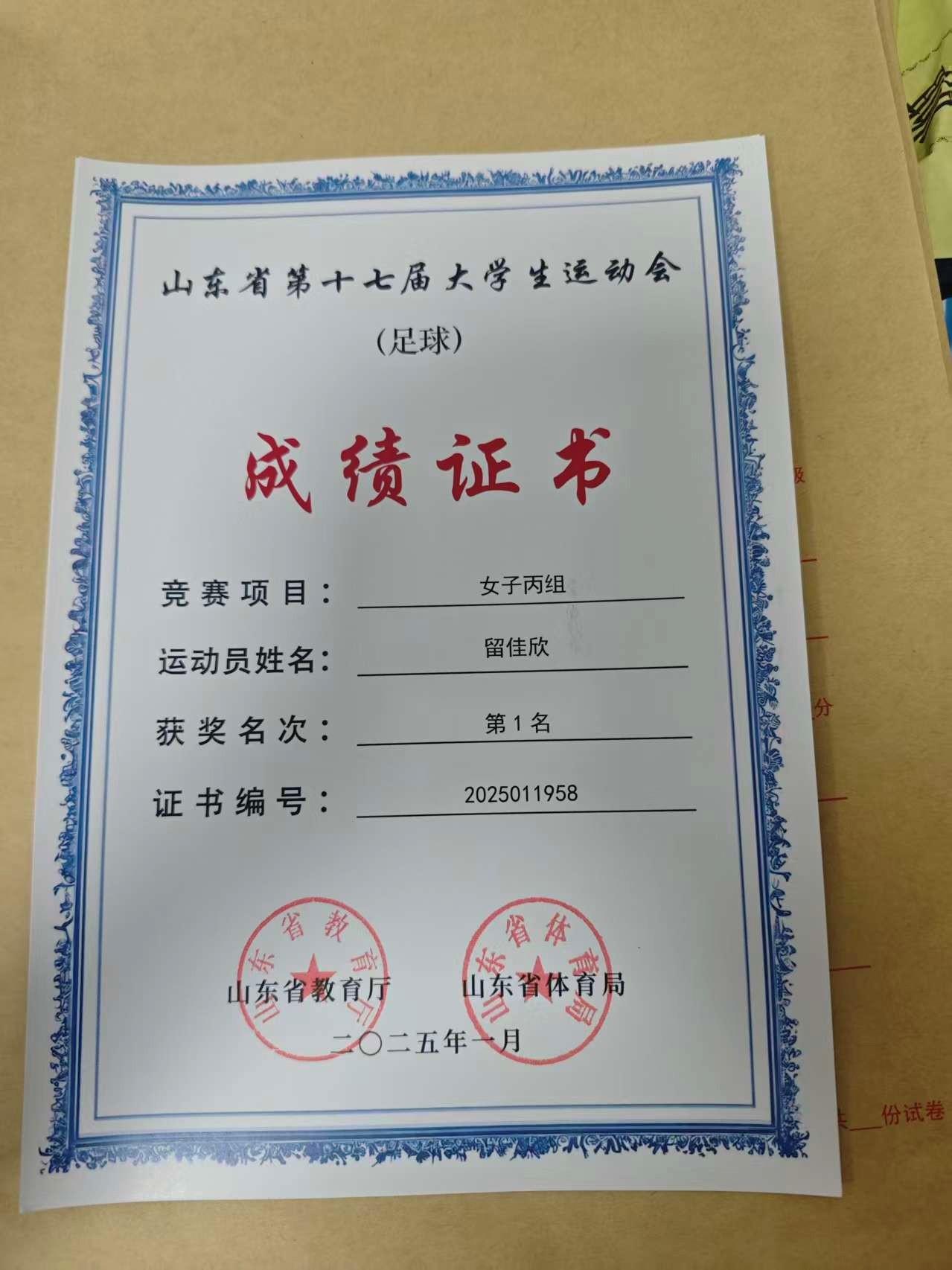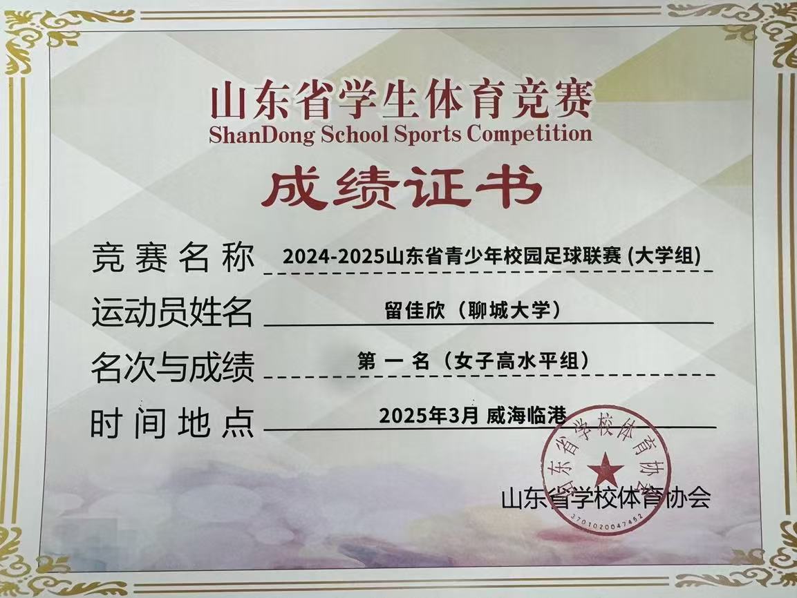 在2025年一月随365(vip)英国上市足球队参加山东省第十七届大学生运动会(足球)获得女子丙组第一名