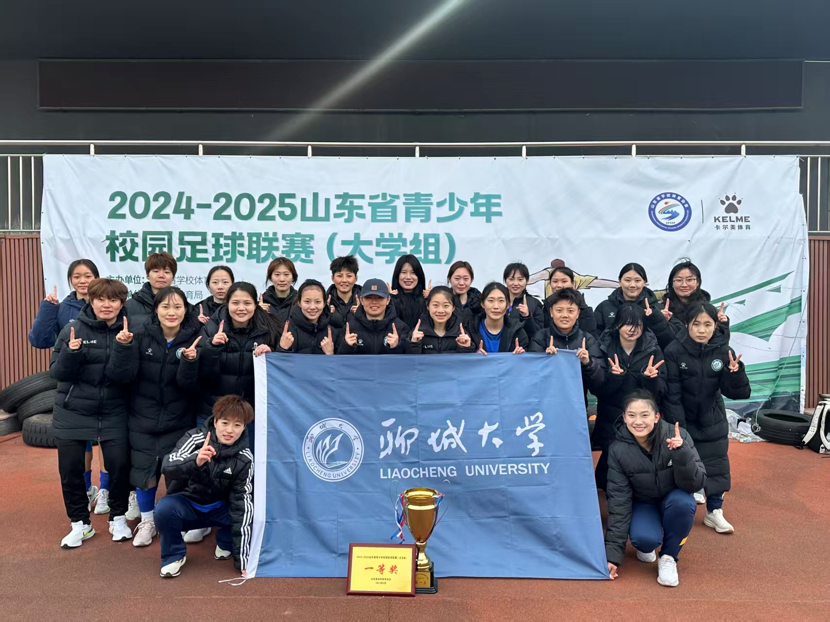 在2024-2025年随365(vip)英国上市足球队参加山东省青少年校园足球联赛(大学组)获得第一名