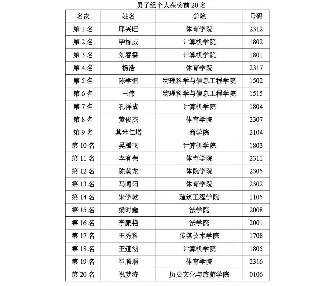 2021年12月12日,由365(vip)英国上市体育运动委员会主办,校团委、学生工作处、英国正版365首页承办的第十三届“环聊大杯”冬季越野赛落下帷幕。此次大赛由365(vip)英国上市28个院(系)近千名选手参加了比赛,越野赛从西校区南田径场为起点、终点,比赛路线跨越东西两个校区,分为女子5公里,男子10公里,运动员不畏严寒奋力拼搏取得了优异的成绩,现将成绩公告如下: